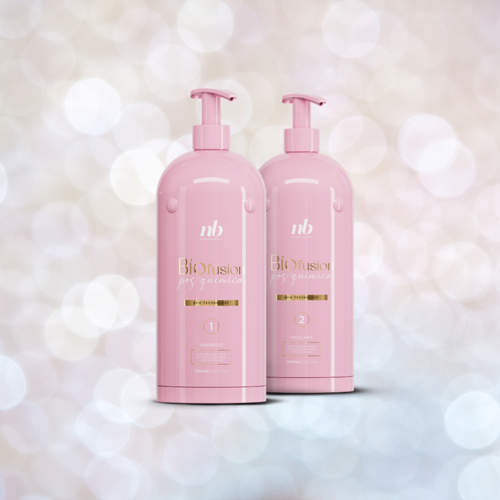 PÓS-QUÍMICA O Shampoo Bio Fusion Pós-Química NB Professional foi elaborado para cabelos quimicamente tratados, possuindo um complexo de extratos de Aloe Vera e Chá Verde, cujos componentes funcionam entre si associando-se e levando o resultado de hidratação e nutrição, estimulando o crescimento, tendo efeito bactericida, fungicida, antioxidante e de proteção solar UV mostrando o potencial de seus extratos, para combate de alopécia, além de purificar neutralizar e aprisionando as impurezas prejudiciais dos radicais livres removendo-as da fibra. A Máscara Bio Fusion Pós-Química NB Professional entrega um resultado singular por meio do seu principal ativo. Possui grande afinidade com a queratina, atoando no metabolismo energético da célula capilar. Sua tecnologia em nanômetros potencializa a interação, melhorando e evoluindo a elasticidade do cabelo, estimulando a vascularização sanguínea, fortalecendo assim a troca de nutrientes entre raiz e haste, entregando a fibra envelhecida alta densidade, levando ao resultando na nano reparação capilar.